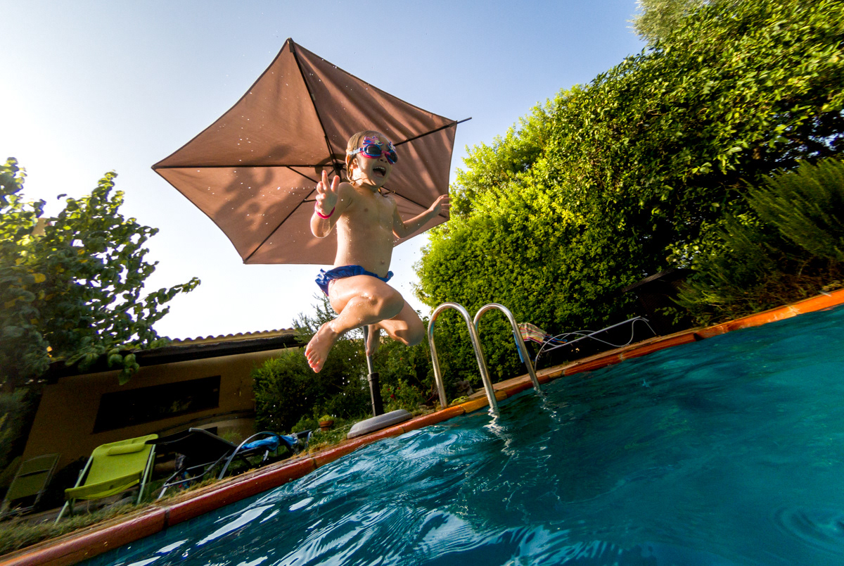 Este concepto tan básico como primordial marcará la diferencia en tus retratos. Por ejemplo, si estás haciéndoles fotos a tus peques, agáchate para ponerte a su altura. Incluso en un plano más general, puedes jugar con el punto de vista acercando mucho la cámara al suelo para darle más énfasis al lugar: en la piscina, si tu peque apenas gatea, estando boca abajo, prueba a poner la cámara del teléfono casi entre el césped y enfoca a tu bebé.